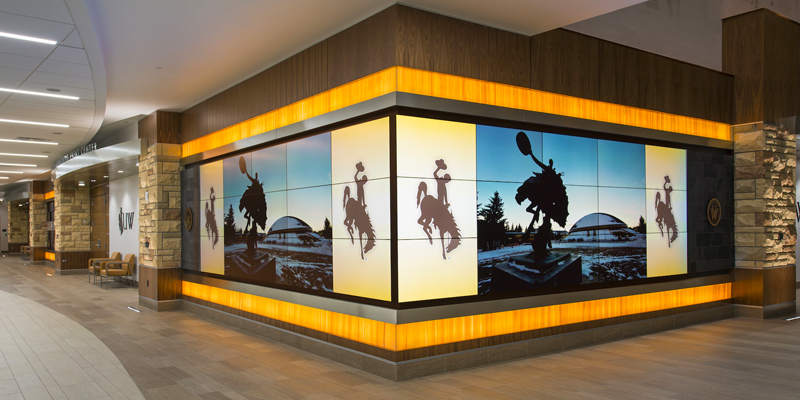 Video walling enables users to display their messages more dynamically and targeted. In today`s media cluttered environment dynamic images are more appealing – and can convey considerably more information – than static ones can. Using media players video walling can provide changing imagery, including eye-catching moving images.
